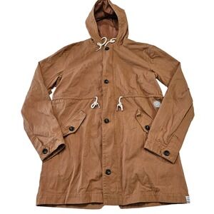 Rhythm Women's Light Brown Zip Up Longline Hooded Utility Jacket. Size XL