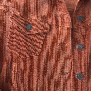 This rust colored corduroy beauty is the perfect statement jacket for any look. Crafted in an 8 wale corduroy featuring metal shank buttons, front chest pockets and front side pockets!