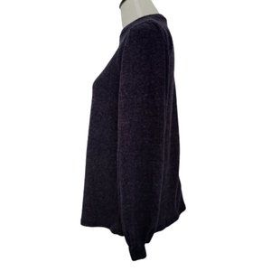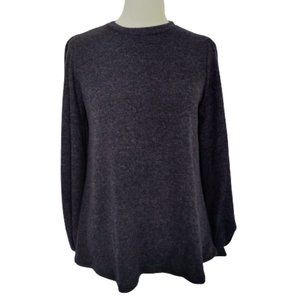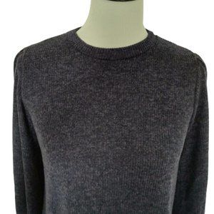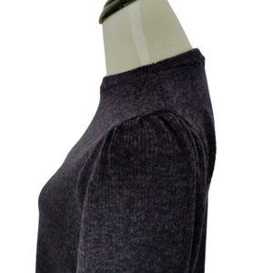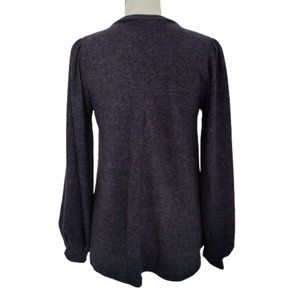 Riah Fashion Navy Blue Knit Ribbed Top Puff Sleeves Relaxed Fit NEW