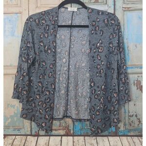 Riah Fashion Women's Small Gray Blue Animal Print Open Front Cardigan Sweater