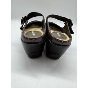 Rialto Brown Mary Jane Wedges. Comfortable cushioned footbed with an adjustable buckle closure and breathable perforated upper. 2.5” wedge heel.