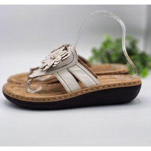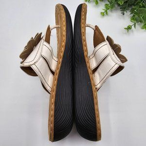 Rialto Cascade Sandals Women's 8M Beige Flower Wedge Thong Wedge Comfort