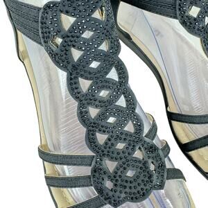 Excellent preowned condition, some wear on soles otherwise appear unworn. Black Cenova strappy studded open toe low-heeled slip-on sandals. Back straps stretch for easy on/off. Approx. measurements: Length 9.5", heel 1.5". Size 7.5.