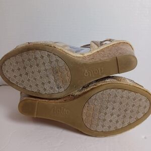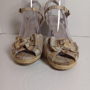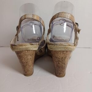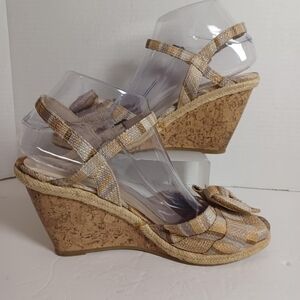 Rialto Cork Wedge Slingback Knitted Pink/Brown Plaid Bow Accent Open Toe Sz 9