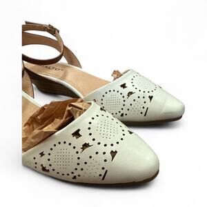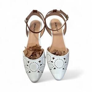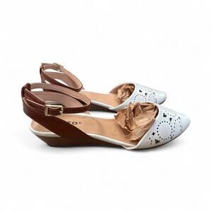 Rialto Miranda White Ankle Strap Kitty Wedge Sandal Size 6