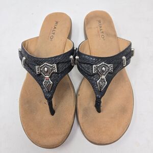 Rialto Women's Black Bailee Thong Comfort Sandals Size 8.5