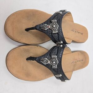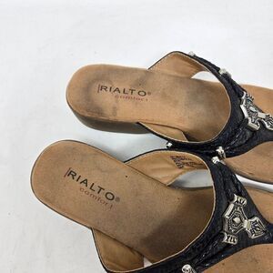 Step out in style with Rialto Bailee chic black sandals with silver tone accents. Perfect for any occasion, these sandals offer both comfort and elegance. Women's size 8.5. Please see all photos as this is the exact pair you will receive. Thank you so much for looking. I am always open to reasonable offers. Have a beautiful day!