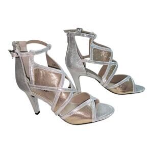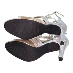 Shine in these elegant silver strappy heeled sandals. Perfect for any occasion, these shoes offer both style and comfort.