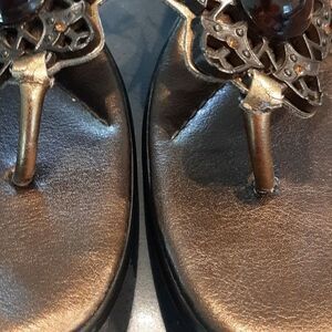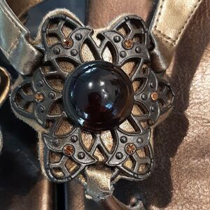 Womens 8.5M Brown Jeweled Slight Heel Good Pre-loved Condition