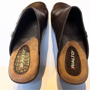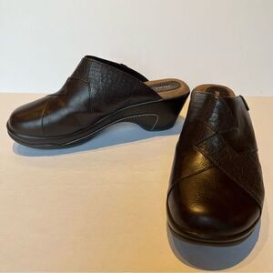 Excellent condition. Heel 2 1/2". Rubber traction soles. Padded foot bed.