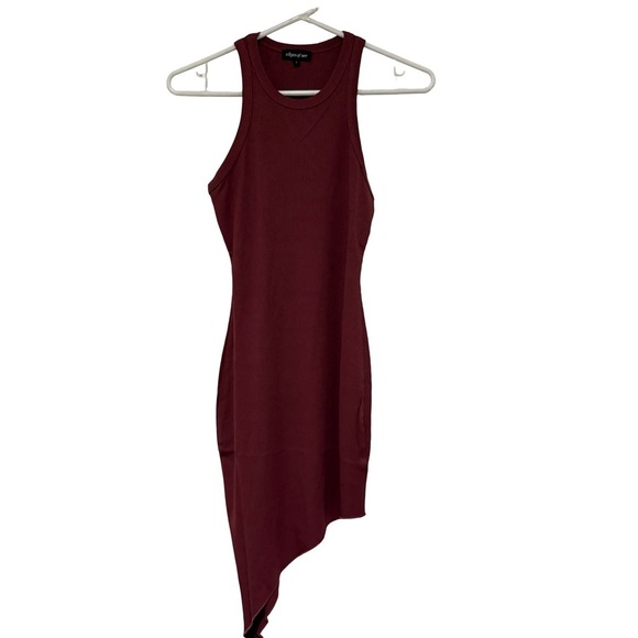 Edges of Her ribbed tank dress in red with asymmetrical hem high-low hemline.