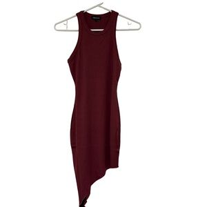 Ribbed Asymmetrical Tank Midi Dress Red Small