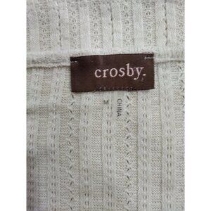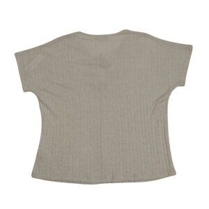 This ribbed beige knit top by Crosby combines comfort and subtle elegance, with a keyhole neckline adorned by a chic ring detail. Its relaxed fit and soft material ensure breathable wear while maintaining its stylish appeal. Versatile for layering or standalone wear, a timeless wardrobe addition.