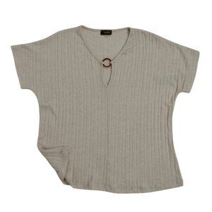 Ribbed Beige Knit Top With Keyhole & Ring Detail By Crosby M. NWT.