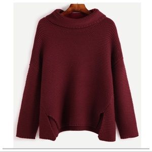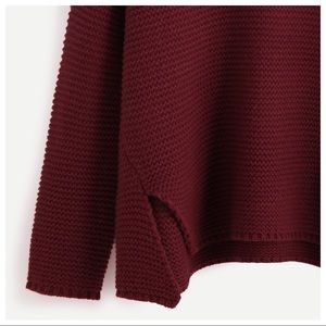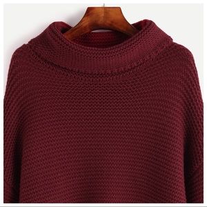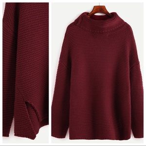 Ribbed Berry Wine Oversized Turtleneck Sweater.