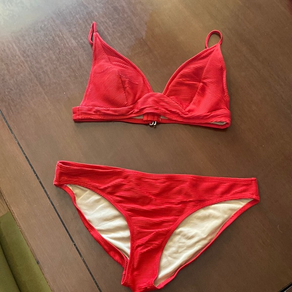 Ribbed material Worn a handful of times Adjustable straps, padding included Full coverage bottoms