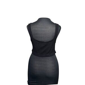 This sleek black crop tank top combines comfort and style. Crafted from a durable viscose blend, it is perfect for layering or wearing solo.