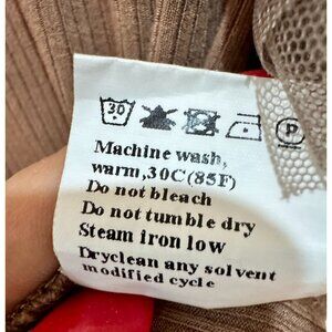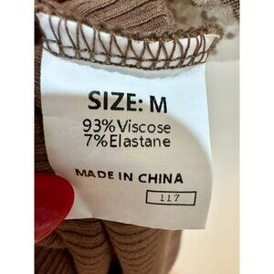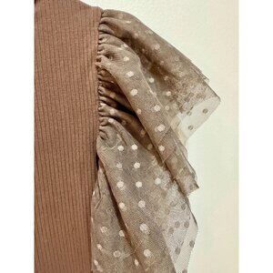 Ribbed Brown Top With Polka Dot Mesh Ruffle Sleeves Short-Sleeve Stretchy Size M