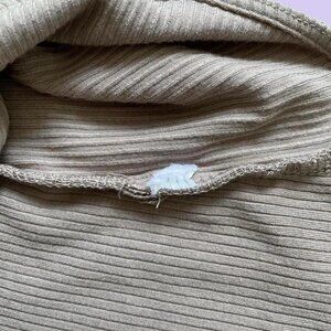 Add some edge to your basics with this ribbed crop top featuring bold silver chain straps. The soft taupe-beige fabric hugs the body with a flattering, stretchy fit. Size Petite Small and fits true to size. Pairs perfectly with cargo pants, low-rise jeans, or a mini skirt for that Y2K or night-out look.