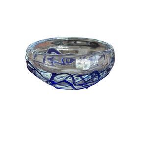 Crafted using the hand blown glass production technique, this bowl is a true work of art. The backstamp is printed and the item is handmade, making it a one-of-a-kind addition to your collection. This bowl is perfect for those who appreciate the beauty of vintage art glass and want to add a touch of elegance to their home decor.