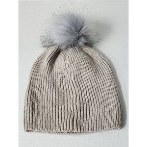 Cream color ribbed Moonbeam beanie with gray pom pom. New with tags made exclusively for Barnes & Noble winter collection.
