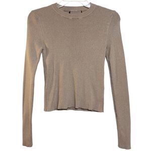 Ribbed Crew Neck Casual Long Sleeve Sweater Top Brown Size Small
