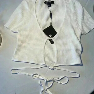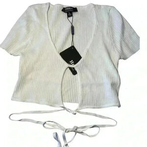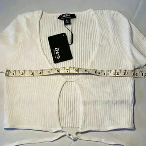 Hera Collection ribbed cropped top. New with tag. Size Large. Cute ribbed crop top with tie in the front. Very stretchy but see measurements .