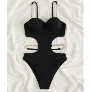 Ribbed Cut out Tie Back Monokini One Piece Swimsuit