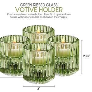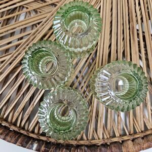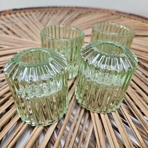 Ribbed Glass Tealight Candlestick Holder Green Set of 4 Decor Wedding Candle