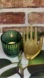Ribbed Glass Votive Candle Holder Set of 2 Emerald Green Round Home Decor