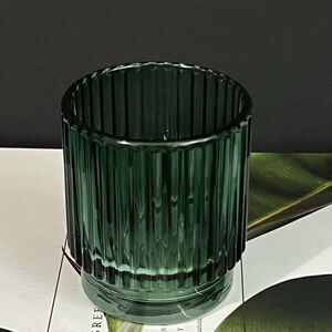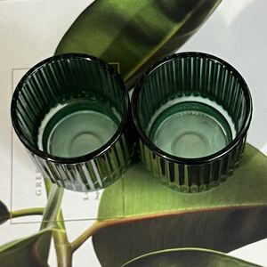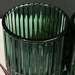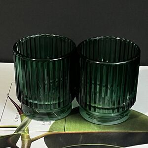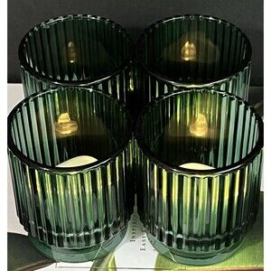 Ribbed Glass Votive Candle Holder Set of 4 Emerald Green Round Holiday Decor