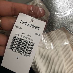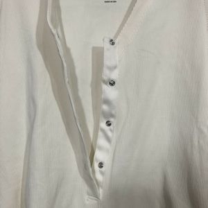 Ribbed Ivory Long Sleeve Henley Thong Bodysuit