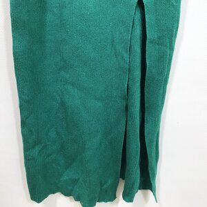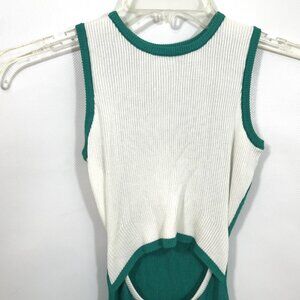 Ribbed Knit Dress Cut Out Sleeveless Sexy Bodycon Cocktail Party Green White XS