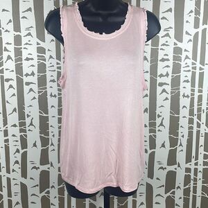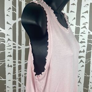 Ribbed Knit Lettuce Edge Ruffle Trim Tank Top XL Pink