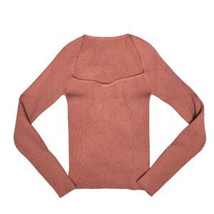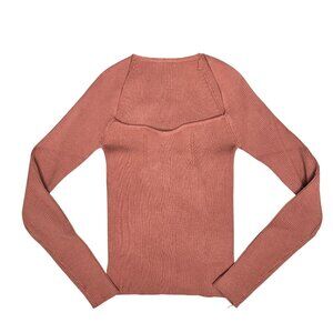 Ribbed Knit Rust Long Sleeve Sweater With Cutout Detail Shein Size S