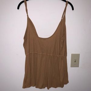 Stretchy ribbed fabric, super cute low cut front with knotted detail. Mustardish brown color. Express “one eleven” brand