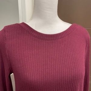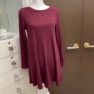Maroon long sleeve ribbed dress. Length is about mid-thigh on a 5'3'' person. Cute scoop neck in the back!