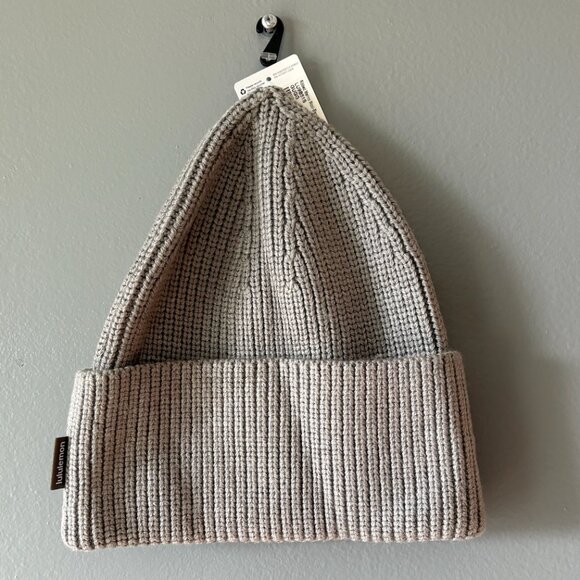 Ribbed Merino Wool Blend Knit Beanie L/XL Grey