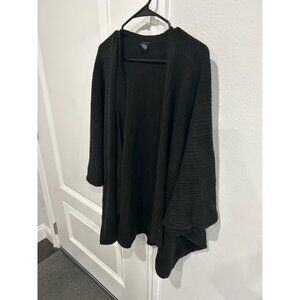 Ribbed Open Front Cardigan Sweater Black One Size Acrylic Cozy Knit Staple