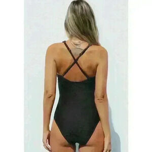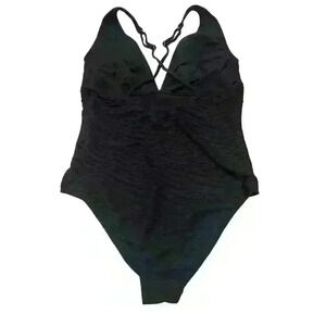Ribbed Plunge Cross Back Tummy Control One Piece Swimsuit Black NWT Size XL