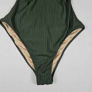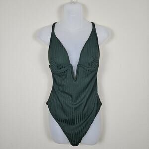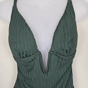 Ribbed Plunge Front V-Wire One Piece Swimsuit L Hunter Green Shade & Shore Beach