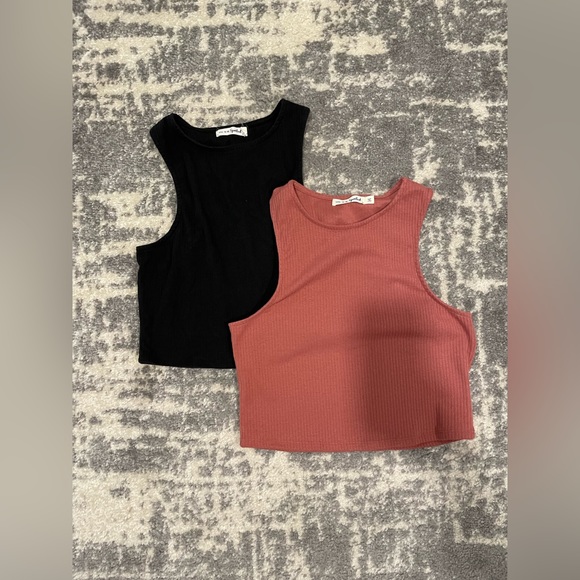 Pink & Black Racerback Tank Tops
