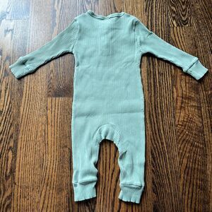 Never worn. Cotton ribbed rompers in mint color. Cute wooden button detail.
