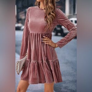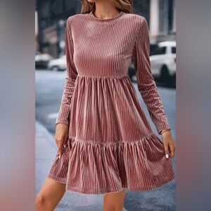 Ribbed Round Neck Ruffle Hem Mini Dress