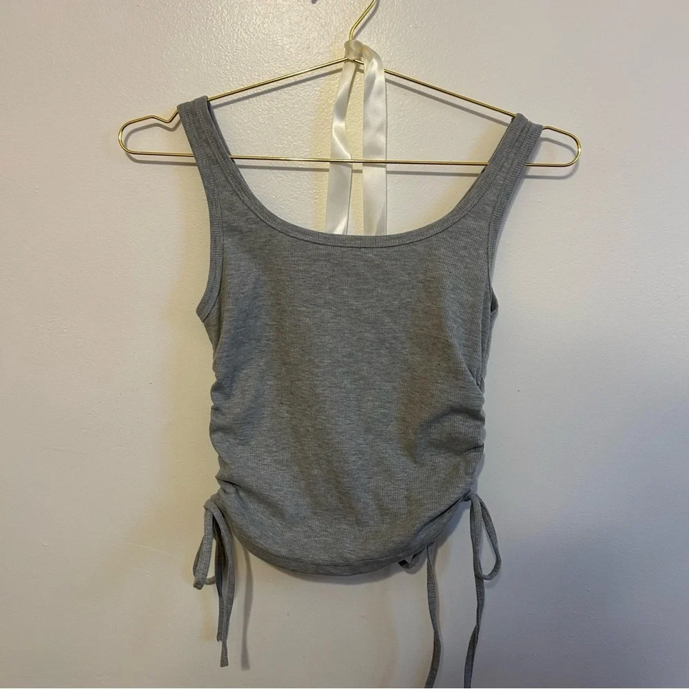 Elevate your style with this chic gray sleeveless top. Featuring a flattering ruched design, it's perfect for any occasion.