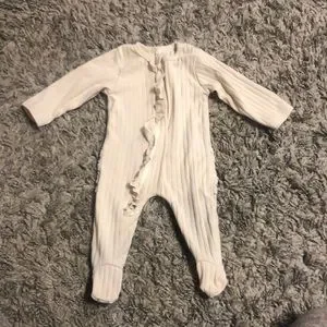 Good used condition. Ivory/beige in color. Tag says 60 for size. My daughter wore this from 3-6 months