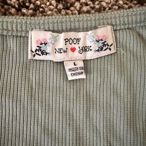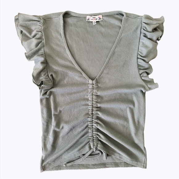 Cute lightweight top with ruffled sleeved and adjustable drawstring on the front. Size L, could fit medium.