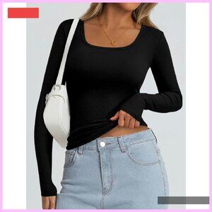 Ribbed Scoop Neck Long Sleeve Tee Basic Top Women's Fall Fashion