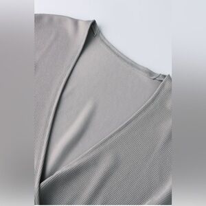 Ribbed Surplice Neck Slit Top Gray Dawn