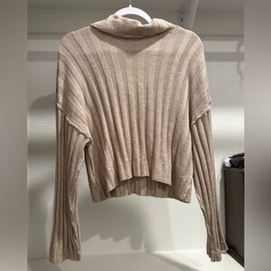 Ribbed Tan Collared Sweater